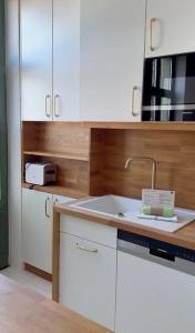 Przestronny apartament składa się z jednej sypialni wyposażonej w jedno łóżko oraz kuchni wyposażonej zarówno w aneks kuchenny, jak i pełną kuchnię do przygotowywania posiłków. Do dyspozycji gości jest jedna łazienka z wanną lub prysznicem oraz osobnym natryskiem. W pokoju dostępne są ogrzewanie, żelazko, ręczniki, pościel, szafa oraz telewizor z płaskim ekranem ze gniazdami przy łóżku dla wygody.
