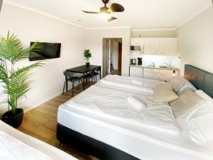 Each air-conditioned unit features a fully equipped kitchen with a stovetop, refrigerator, microwave, kitchenware, coffee machine, electric kettle and toaster. The studios are furnished with three beds each and include flat-screen TVs with streaming services along with soundproofed rooms. Private bathrooms come complete with showers, hairdryers and complimentary toiletries. Additional room amenities comprise seating areas, wardrobes or closets, sofas or sofa beds, trouser presses as well as ironing facilities including irons and boards.