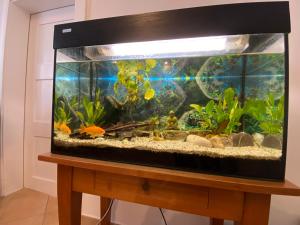 En el interior del apartamento encontrarán una cocina americana totalmente equipada con horno, placa de cocina, frigorífico, tostadora, cafetera eléctrica y hervidor eléctrico, además incluye menaje y utensilios para preparar té o café junto a una mesa comedor. El espacio cuenta con suelos de baldosa o mármol calefactados para mayor confort. Entre las comodidades adicionales están plancha con tabla para planchar, armario o ropero, sofá cama así como toallas y ropa de cama provistas con almohadas no plumón.