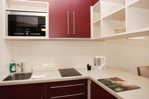 Each bright open-plan apartment includes one or two beds, a dining area, a seating space with satellite and flat-screen TV, as well as an en suite bathroom stocked with shampoo, body soap, slippers and hairdryer. Kitchenettes come fully equipped with stovetop, refrigerator, kitchenware along with tea and coffee making facilities. Additional room features include heating, soundproofing, ironing facilities with iron and board, work desk, wardrobe or closet options as well as safety deposit boxes suitable for laptops.