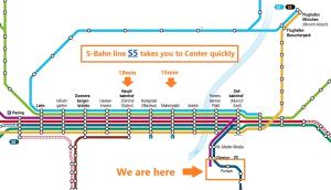 L’appartement se trouve à 8,3 km du Musée national bavarois et à moins de 10 km du Deutsches Museum ainsi que de la Nouvelle Mairie (Neues Rathaus) et du carillon Rathaus-Glockenspiel. L’aéroport de Munich est situé à 43 km.