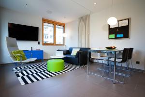 Los alojamientos disponen de cocinas americanas bien equipadas con lavavajillas, hornos, placas de cocina, frigoríficos, microondas, cafeteras, tostadoras y menaje completo que incluye utensilios para té y café. Además cuentan con mesas de comedor y tronas para niños. Las habitaciones están climatizadas con aire acondicionado y calefacción, tienen suelos de madera o baldosas, facilidades para planchar como planchas y tablas, cajas fuertes, armarios o roperos, sofás o sofás cama con áreas para sentarse así como escritorios. Algunas unidades ofrecen terrazas o balcones desde donde se pueden disfrutar vistas a la ciudad.