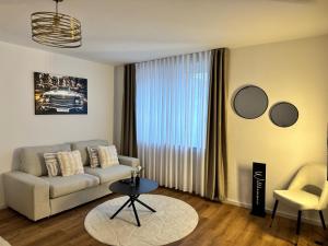The apartment features one living room with a sofa bed and seating area, one separate bedroom, and one bathroom equipped with a bathtub or shower, hairdryer, complimentary toiletries including shampoo and body soap. Guests can prepare meals in the fully equipped kitchen that includes a stovetop, refrigerator, dishwasher, coffee machine, electric kettle as well as tea and coffee making facilities. Additional in-room amenities include heating, bed linen, towels, wardrobe/closet space and baby cot availability.