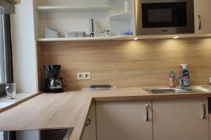 Im geräumigen Apartment stehen zwei Betten zur Verfügung sowie eine voll ausgestattete Küche mit Backofen, Herdplatte, Kühlschrank, Geschirrspüler, Mikrowelle sowie Kaffee- und Teezubereitungsmöglichkeiten. Der Wohnbereich verfügt über einen Flachbildfernseher mit Streaming-Diensten und Kabelkanälen. Weitere Ausstattung umfasst Heizung, Bügelbrett mit Bügeleisen, Schlafsofa, Sitzbereich, Arbeitstisch und Kleiderschrank.