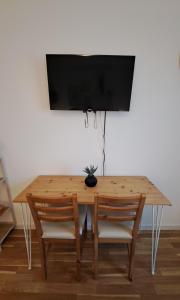 Das Apartment umfasst ein Schlafzimmer mit zwei Betten sowie einen Sitzbereich. Die gut ausgestattete Kochnische verfügt über Backofen, Kochfeld, Kühlschrank, Küchenutensilien, Kaffeemaschine, Wasserkocher und Esstisch. Das Badezimmer ist mit Dusche oder Badewanne ausgestattet und stellt Pflegeprodukte wie Duschgel und Shampoo bereit.